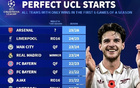 過(guò)往歐冠14次出現(xiàn)單賽季前6戰(zhàn)全勝球隊(duì),最終僅2隊(duì)奪冠